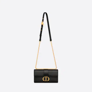 The East-West bag with chain enhances the 30 Montaigne line with a timeless and elegant design crafted in black calfskin. The flap has an antique gold-finish metal CD clasp, inspired by the seal of a Christian Dior perfume bottle. Other details, like the embossed 30 Montaigne signature on the back, highlight the streamlined design. The bag features a removable chain strap with a leather insert that allows it to be comfortably carried by hand, worn over the shoulder or crossbody.
