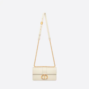 The East-West bag with chain enhances the 30 Montaigne line with a timeless and elegant design crafted in latte calfskin. The flap has an antique gold-finish metal CD clasp, inspired by the seal of a Christian Dior perfume bottle. Other details, like the embossed 30 Montaigne signature on the back, highlight the streamlined design. The bag features a removable chain strap with a leather insert that allows it to be comfortably carried by hand, worn over the shoulder or crossbody.
