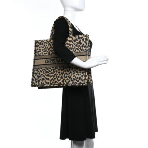 CHRISTIAN DIOR Canvas Mizza Large Leopard Book Tote Beige.