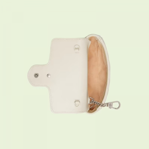 Accessories continue to come to the fore of the Creative Director’s collections. A distinctly contemporary accessory, the belt bag is presented in new ways throughout the Luxury narrative, emphasizing different elements of the versatile style. Here, it is introduced as part of the hand universe in white matelassé leather with a strap.