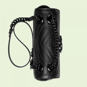 he mini hand shoulder bag has a softly structured shape and an oversized flap closure with Double G hardware. The sliding strap can be worn multiple ways, changing between a shoulder and a top handle bag. Made in matelassé leather, the accessory is introduced for Luxury Love Parade with monochrome hardware.