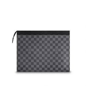 The in Damier Graphite canvas is a smart, structured totethat can be used for a variety of purposes. It can be carried in the hand for a stylish look, or slipped inside a larger bag when traveling. It is large enough to hold a laptop and contains a pocket and credit card slots.
