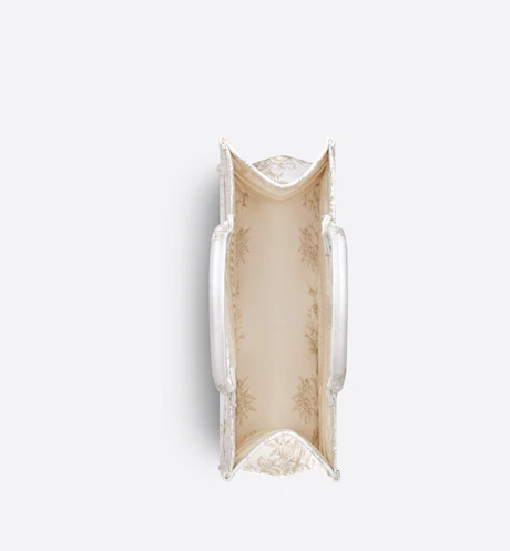 Introduced by Maria Grazia Chiuri, Dior’s Creative Director, the Dior Book Tote has become a staple of the Dior aesthetic. Designed to hold all the daily essentials, the style is fully embroidered with the Dior Jardin d’Hiver motif enhanced by gold-tone metallic thread, showcasing a poetic and exotic interpretation of Mr. Dior’s wall tapestries. Adorned with the ‘CHRISTIAN DIOR PARIS’ signature on the front, the medium tote exemplifies the House’s signature savoir-faire and may be carried by hand or worn over the shoulder.