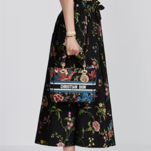 The Lady D-Lite bag combines classic elegance with House modernity. The style is fully embroidered with the bucolic black multicolor Dior Birds motif, inspired by the Japonisme art movement and featuring birds surrounded by floral decor. A Christian Dior Paris signature adorns the front, while D.I.O.R. charms in rose gold-finish metal further enhance and highlight the silhouette. Featuring a wide embroidered shoulder strap, the medium Lady D-Lite bag can be carried by hand, worn over the shoulder or crossbody.