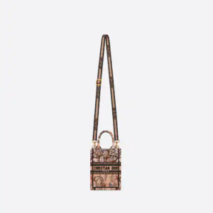 The phone bag enhances the iconic Dior Book Tote line with an ideal example of the House’s savoir-faire. The style is fully embroidered with the powder pink Dior Jardin Magique motif, a bucolic and enchanting design inspired by a magical world. Enhanced by the ‘CHRISTIAN DIOR PARIS’ signature on the front, the miniature bag will accommodate a phone as well as the small daily essentials. Completed by an adjustable and removable embroidered shoulder strap, the modern accessory can be carried by hand, worn over the shoulder or crossbody.