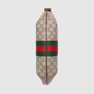 A combination of the House’s most recognizable elements—the motif and Web stripe—the world of continues to evolve, incorporating new shapes and silhouettes. The half-moon design mixes emblematic references with the unique charms of the shoulder bag, a popular Luxury model since the late ’50s. Crafted in canvas, it’s trimmed with textured leather and topped with Double G hardware.