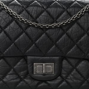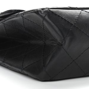 This is an authentic Aged 2.55 Reissue 226 Flap in Black. This stylish shoulder bag is crafted of aged diamond-leather in black. The bag features ruthenium reissue shoulder strap. and a matching mademoiselle turn lock on the crossover flap. The bag opens to reveal an inner flap. a front pocket. and burgundy leather interior with patch pockets.