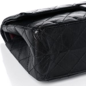 This is an authentic Aged 2.55 Reissue 226 Flap in Black. This stylish flap shoulder bag is crafted of diamond-textured aged leather in black. The handbag features a reissue shoulder strap and a Mademoiselle turn lock. This opens to reveal an inner flap and a burgundy leather interior with patch pockets.