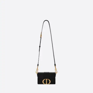 The 30 Montaigne line is inspired by the emblematic address and offers essential pieces that embody the House’s iconic codes. The compact handbag is crafted in black box calfskin for an elegant and modern look. The flap is embellished with an antique gold-finish metal ‘CD’ clasp, inspired by the seal of a Christian Dior perfume bottle. Refined details, such as an embossed ’30 MONTAIGNE’ signature on the back and the military-inspired buckle, define this unique design. Featuring an adjustable leather shoulder strap, the bag may be carried by hand, worn over the shoulder or crossbody.