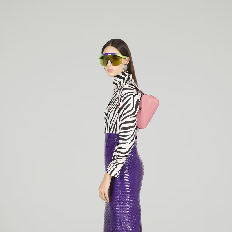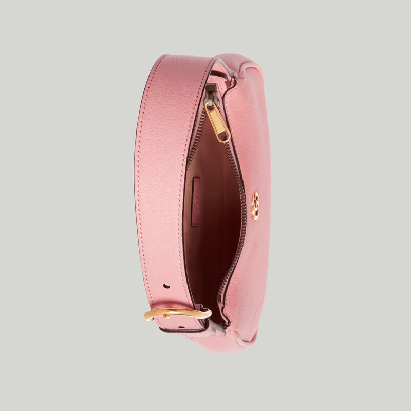 A nod to styles popular during the late 1990s and early 2000s, the line welcomes a new shape with this small shoulder bag, which pairs the essential design with pop colours and the unmistakable Double G hardware, for a sleek yet unexpected look. Here, it’s presented in a soft light pink leather with a gold-toned zip closure.