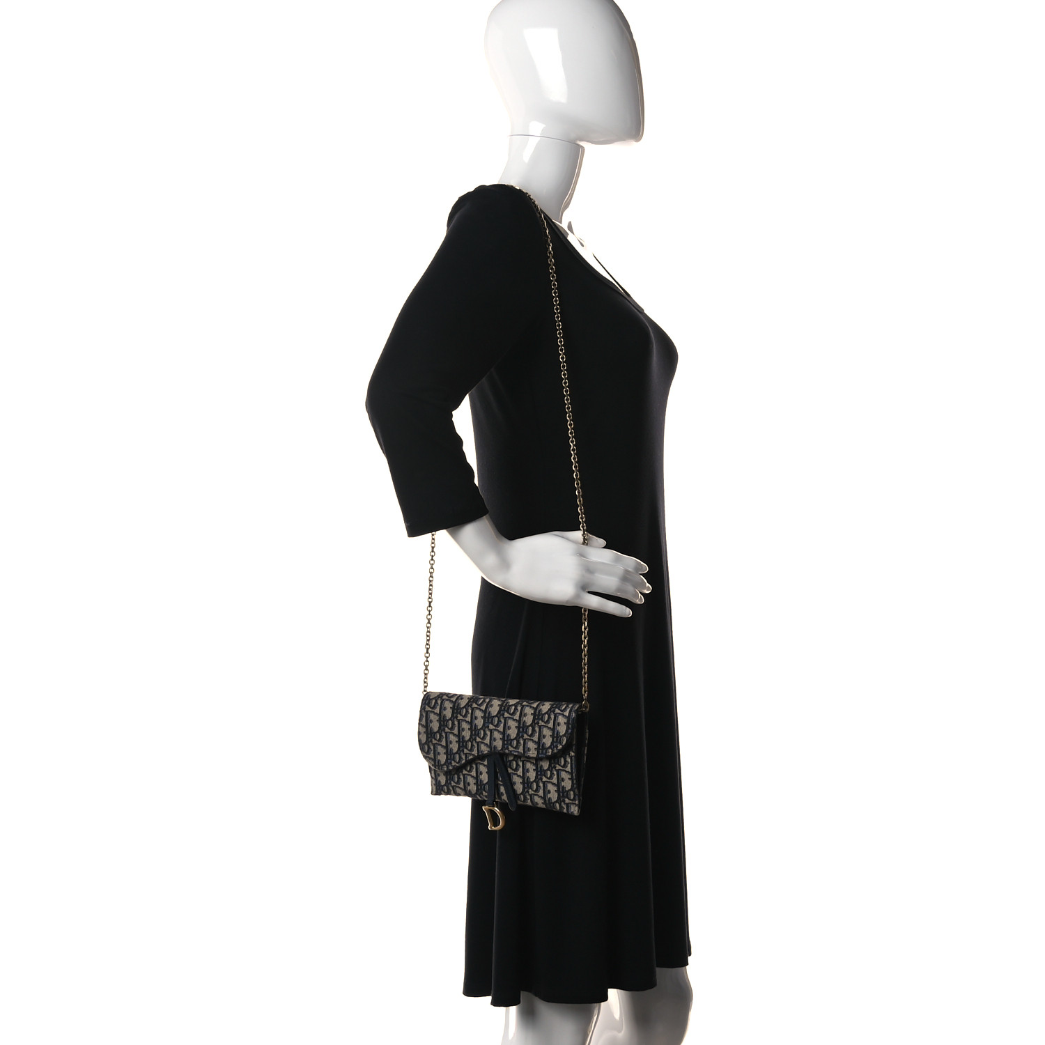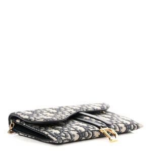 CHRISTIAN DIOR Oblique Saddle Chain Long Wallet Blue.