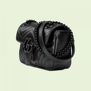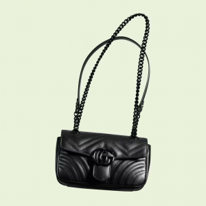 he mini hand shoulder bag has a softly structured shape and an oversized flap closure with Double G hardware. The sliding strap can be worn multiple ways, changing between a shoulder and a top handle bag. Made in matelassé leather, the accessory is introduced for Luxury Love Parade with monochrome hardware.