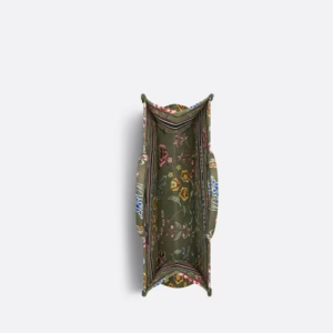 Introduced by Maria Grazia Chiuri, Creative Director of Christian Dior, the Dior Book Tote has become a staple of the Dior aesthetic. Designed to hold all daily essentials, the style is fully embroidered with a green multicolor Dior Petites Fleurs motif, a romantic and vibrant homage to Mr. Dior’s passion for florals. Adorned with the Christian Dior Paris signature on the front, the large tote exemplifies the House’s signature savoir-faire and may be carried by hand or worn over the shoulder.