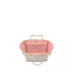The bag tote unites timeless design with heritage details. Made from fresh Damier Azur canvas with natural cowhide trim, it is roomy yet not bulky, with side laces that cinch for a sleek allure or loosen for a casual look. The slim leather handles slip easily over the shoulder or arm. Lined in colorful textile, it features a removable totewhich can be used as a clutch or an extra pocket.