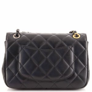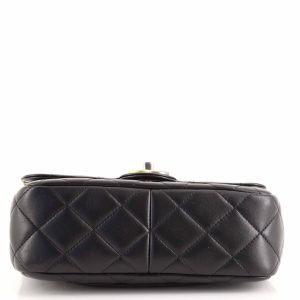 Black Small Flap Bag Embellished Glass Pearls.