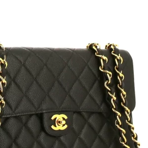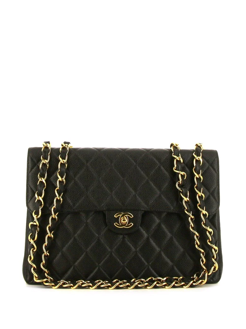Black leather Timeless Flap shoulder bag from Luxury featuring diamond quilting. foldover top. signature interlocking turn-lock fastening. two leather and chain-link shoulder straps. rear patch pocket. internal logo stamp. leather lining. gold-tone hardware. rectangle body and Serial Number: 5647158. This item comes with a Collector Square certificate of authenticity.. POSITIVELY CONSCIOUS: Purchasing this item continues its narrative and reduces the environmental impact of using new resources. You can be confident that you’re making a better choice for the Planet..
