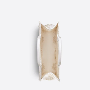 Introduced by Maria Grazia Chiuri, Dior’s Creative Director, the Dior Book Tote has become a staple of the Dior aesthetic. Designed to hold all the daily essentials, the style is fully embroidered with the Dior Jardin d’Hiver motif enhanced by gold-tone metallic thread, showcasing a poetic and exotic interpretation of Mr. Dior’s wall tapestries. Adorned with the ‘CHRISTIAN DIOR PARIS’ signature on the front, the medium tote exemplifies the House’s signature savoir-faire and may be carried by hand or worn over the shoulder.
