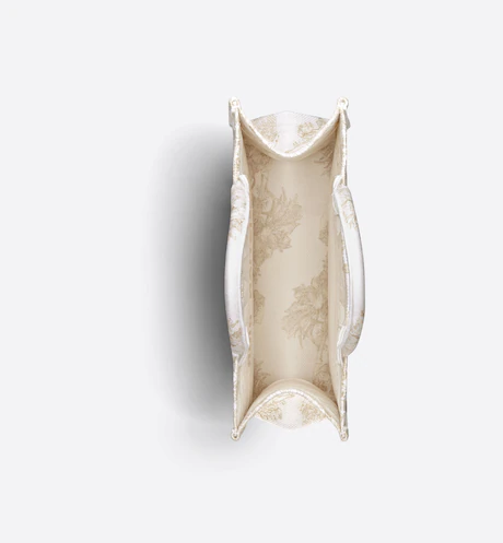 The Dior Book Tote is an original creation introduced by Dior’s Creative Director, Maria Grazia Chiuri, and has become a staple of the Dior aesthetic. Designed to hold all the daily essentials, it is fully embroidered with the Rêve d’Infini motif by artist Pietro Ruffo embellished with gold-tone metallic thread, offering a dreamlike new take on Christian Dior’s favorite star symbol and essential House code. Adorned with a ‘CHRISTIAN DIOR PARIS’ signature on the front, the medium tote exemplifies the House’s signature savoir-faire and may be carried by hand or worn over the shoulder.