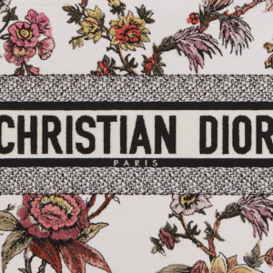 The Dior Book Tote is an original creation introduced by Maria Grazia Chiuri, Dior’s Creative Director, and has become a staple of the Dior aesthetic. Designed to hold all the daily essentials, it is fully embroidered with the white multicolor Dior Jardin Botanique motif and presents a romantic floral pattern inspired by Mr. Dior’s beloved Granville gardens. Adorned with the ‘CHRISTIAN DIOR PARIS’ signature on the front, the medium tote exemplifies the House’s signature savoir-faire and may be carried by hand or worn over the shoulder.