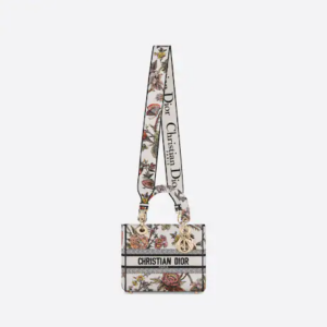 The Lady D-Lite bag combines classic elegance with House modernity. Fully embroidered with the multicolor Dior Jardin Botanique motif, it features a romantic floral pattern inspired by Mr. Dior’s beloved Granville gardens. The front features a ‘CHRISTIAN DIOR PARIS’ signature while the ‘D.I.O.R.’ charms in pale gold-finish metal embellish and illuminate the silhouette. Equipped with a wide, reversible and removable embroidered shoulder strap, the medium Lady D-Lite bag can be carried by hand or worn crossbody.