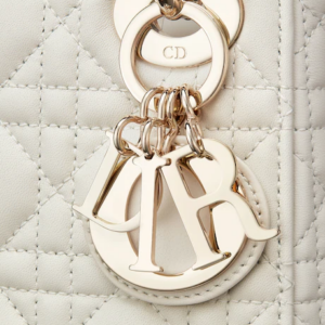 The Lady Dior handbag epitomizes the House’s vision of elegance and beauty. Refined and sleek, the timeless creation is crafted in latte lambskin and covered with Cannage stitching, creating an instantly recognizable quilted texture. The pale gold-finish metal ‘D.I.O.R.’ charms embellish and illuminate its silhouette. Featuring a removable chain shoulder strap, the miniature Lady Dior bag can be carried by hand or worn crossbody as an ideal evening wear companion.
