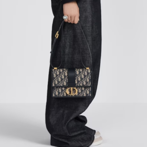 The bag enhances the 30 Montaigne line with a timeless and elegant design crafted in blue Dior Oblique jacquard. The flap has an antique gold-finish metal CD clasp, inspired by the seal of a Christian Dior perfume bottle. Other details, like the embossed 30 Montaigne signature on the back and the military-inspired buckle, highlight the streamlined design. Featuring an adjustable leather shoulder strap, the small 30 Montaigne bag can be carried by hand, worn over the shoulder or crossbody.