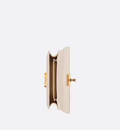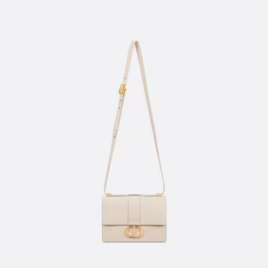 The bag enhances the 30 Montaigne line with a timeless and elegant design crafted in Dusty ivory calfskin. The flap has an antique gold-finish metal CD clasp, inspired by the seal of a Christian Dior perfume bottle. Other details, like the embossed 30 Montaigne signature on the back and the military-inspired buckle, highlight the streamlined design. Featuring an adjustable leather shoulder strap, the small 30 Montaigne bag can be carried by hand, worn over the shoulder or crossbody.