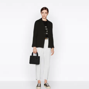 The Lady Dior My ABCDior bag epitomizes Dior’s vision of elegance and beauty. Sleek and refined, the timeless style is crafted in black ultramatte calfskin with Cannage stitching, creating the instantly recognizable quilted texture. Tonal metal ‘D.I.O.R.’ charms further embellish its silhouette with an elegant allure. Featuring a shoulder strap that can be personalized with badges, the small, unique design may be carried by hand or worn crossbody.