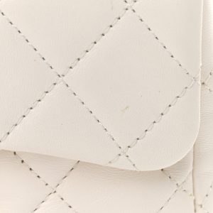 This is an authentic Mini Flap in White. The mini crossbody is crafted in leather in white. The bag features a link leather threaded shoulder strap and a facing turn lock. This opens the flap to a leather interior with pockets.
